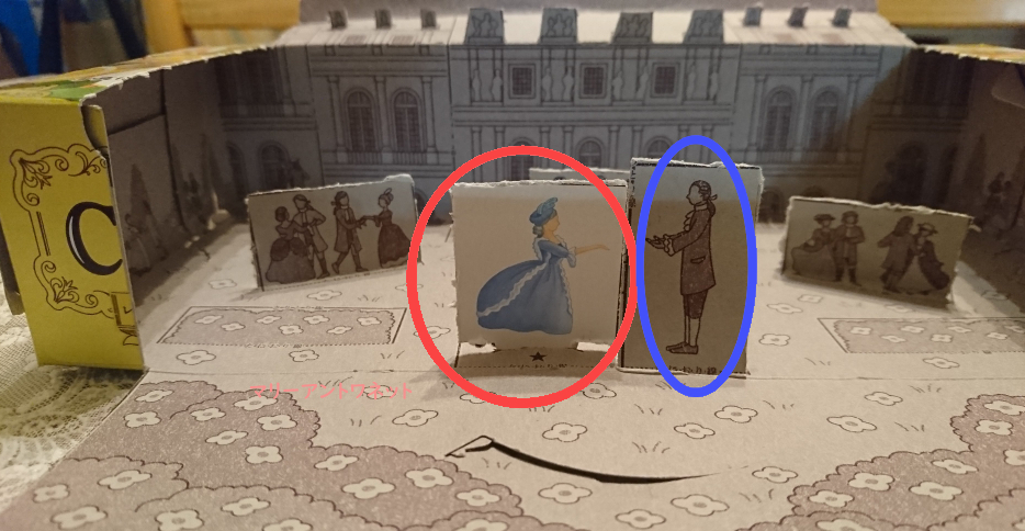 箱で工作すると、ベルサイユの庭園と思われる場所に貴族の紳士淑女が立ち現れます。