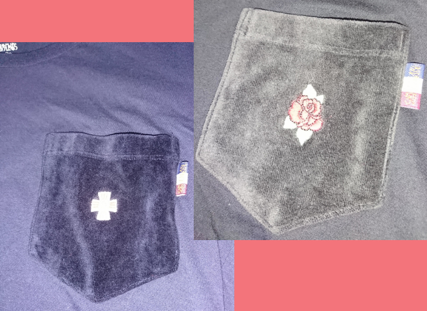 左のTシャツは白く見えますが、薄いグレー、真ん中と右のTシャツはポケットの素材が本体と違っていて、別珍風です。