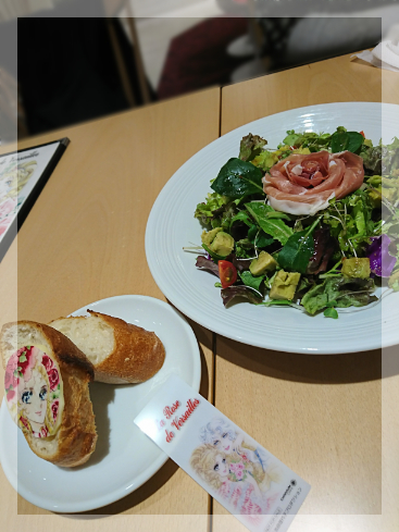 ワインクーラーは、上が黒っぽいのでアンドレ、下の黄色い部分が=金のイメージでオスカルさまを表しているのでしょうか、こちらは友人が頼みましたが、美味しかったそうです。