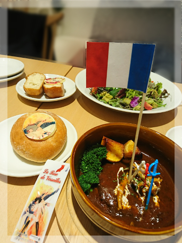 ”オスカルとアンドレの炎の中のペガサス~ハンバーグシチュー赤ワイン煮込み~(ソフトカンパーニュつき”。