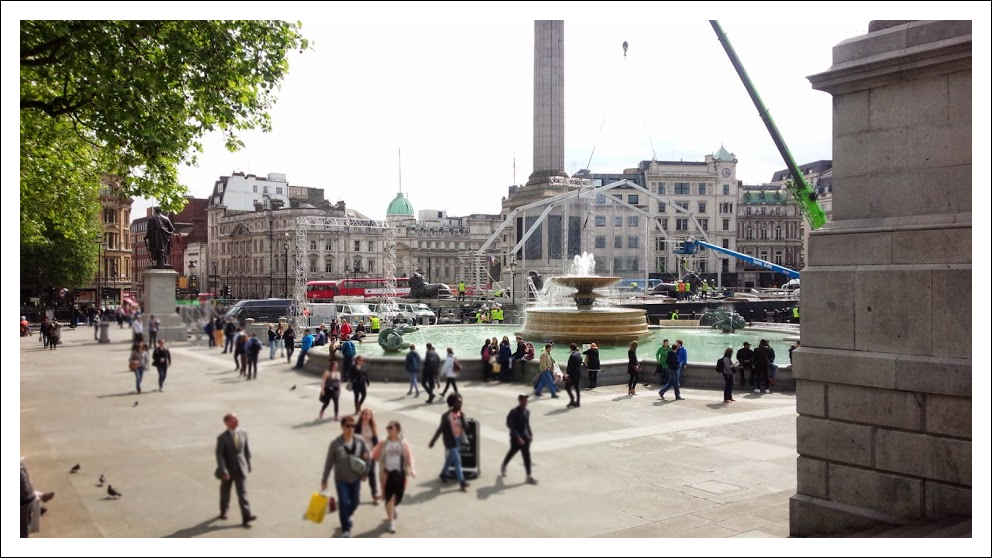この日は、ネルソン像の周りにステージを建設中。