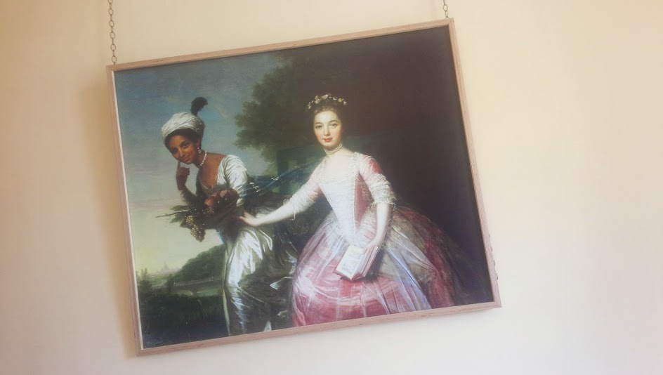 オリジナルはスコットランドのマンスフィールド伯爵邸にあるそうで、これはケンウッドハウスに飾られていた写真を撮影したものですが、当時、奴隷である黒人が絵画に描かれる場合、白人である”主人”より下部に描かれ、正面に視線を向けてはいけなかったそうです。